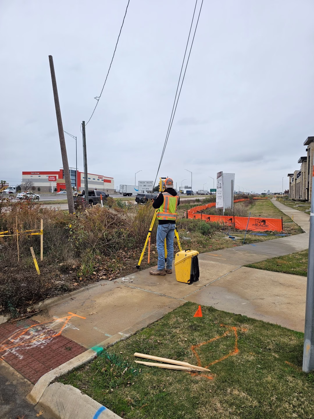 Eagle Surveying supported utility relocation efforts along I-35 in Denton by staking new water and sewer lines, locating undocumented existing utilities, and assisting engineers with revised routing for growing commercial development.